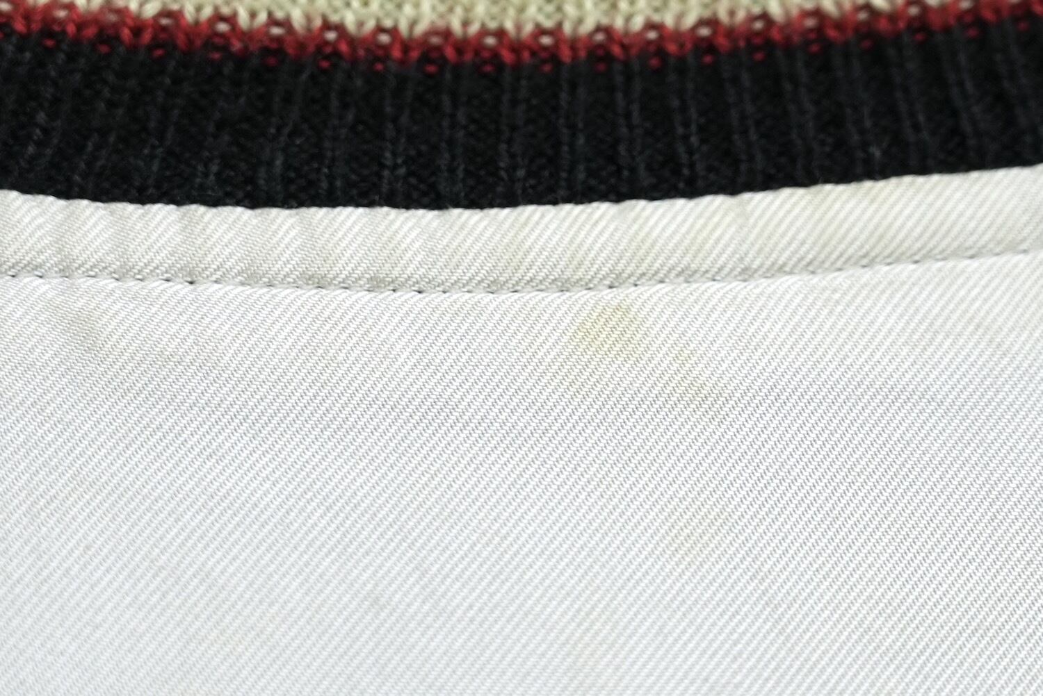 白サイド全体にシミがあります。