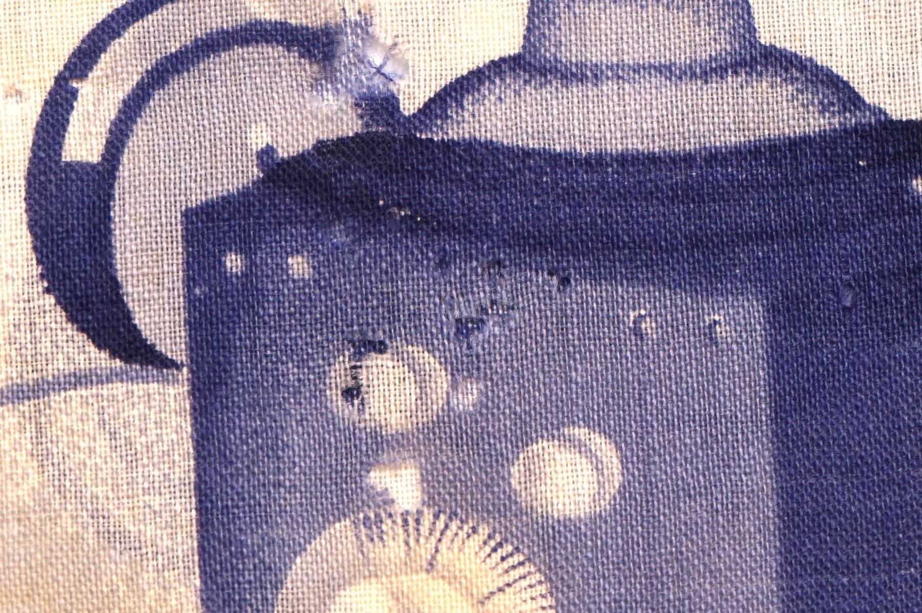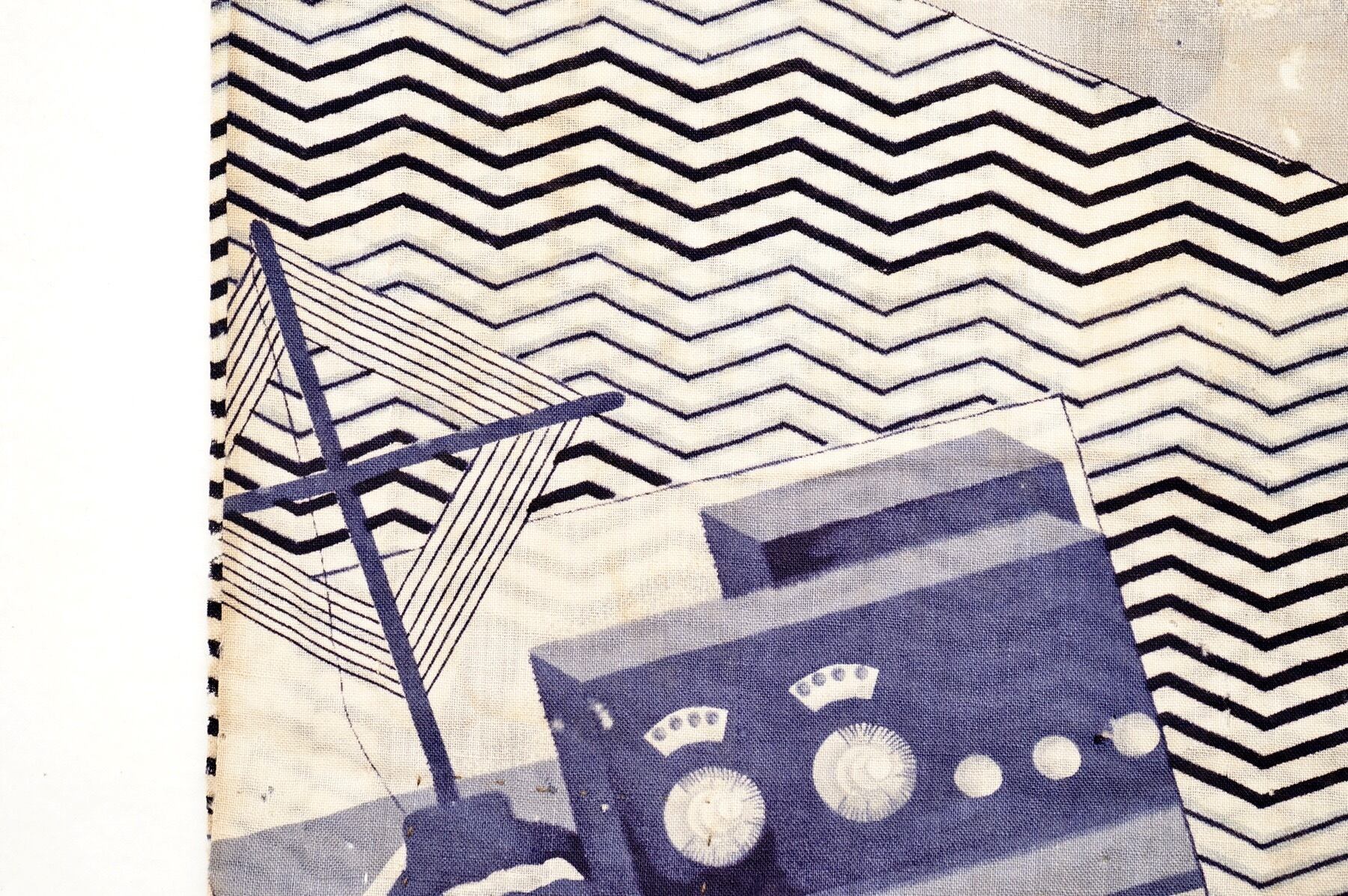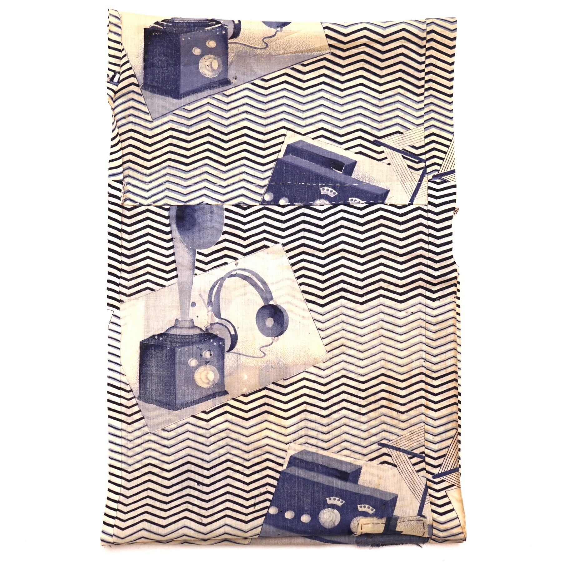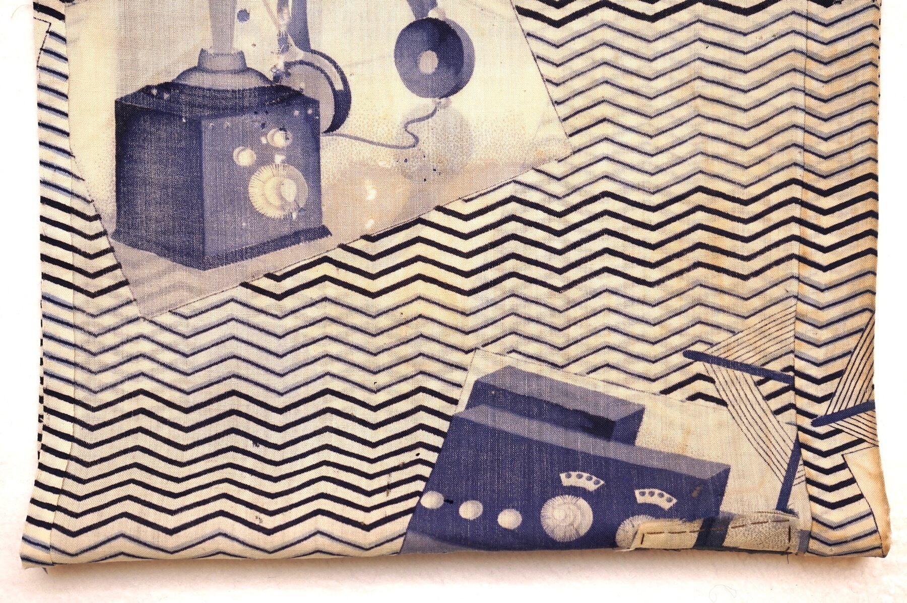 初期のラジオ、ラッパ型のスピーカーなどが描かれた、面白柄襦袢の袖部分です。