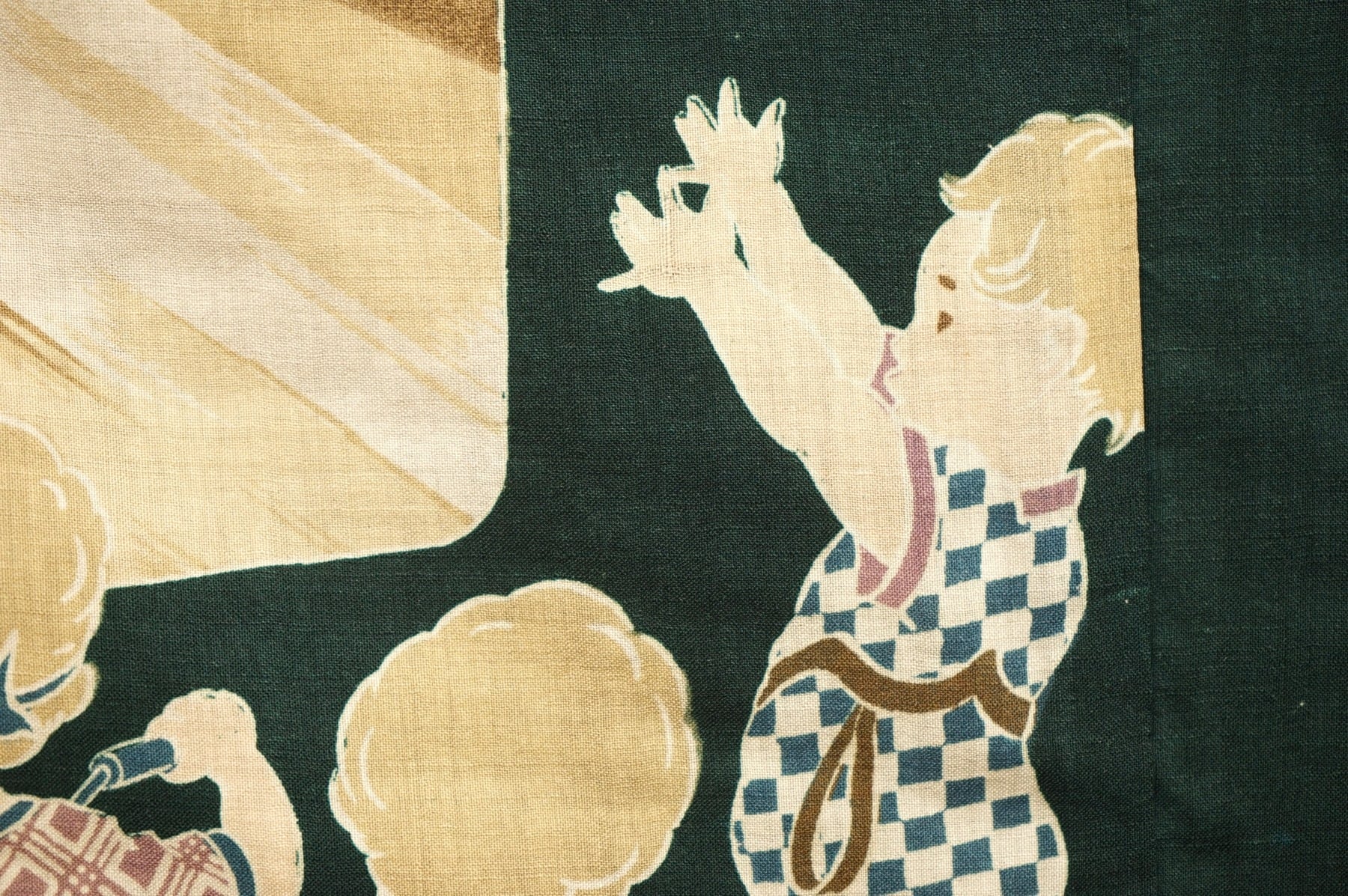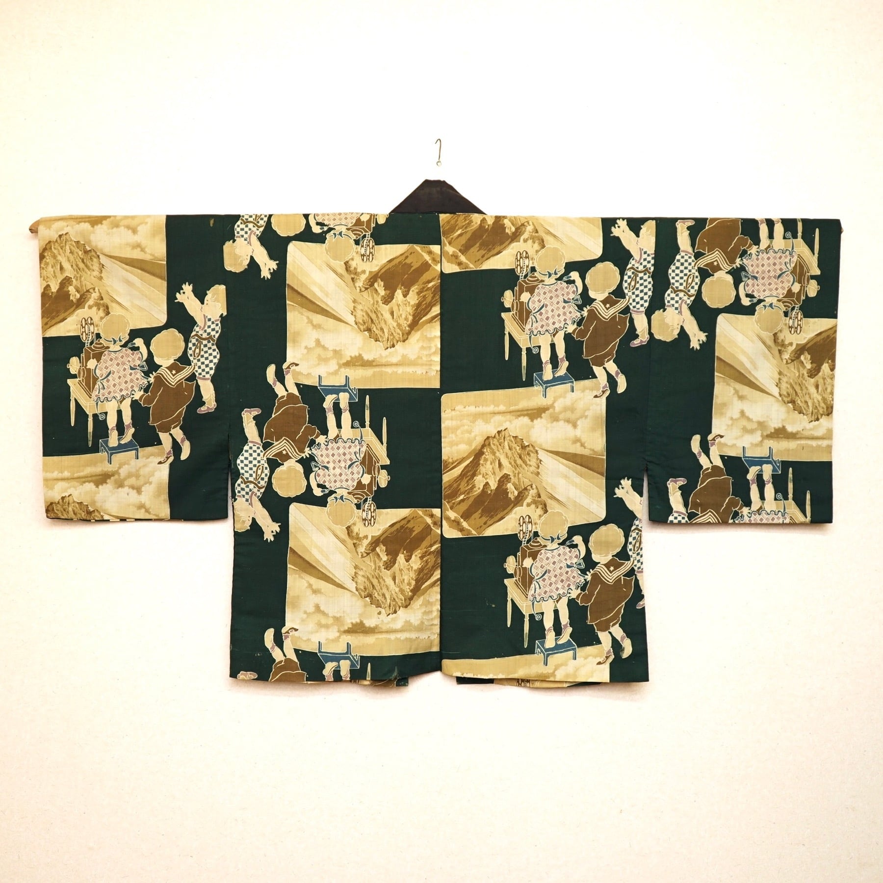 古い映写機や子どもたちが描かれた面白柄の半襦袢です。